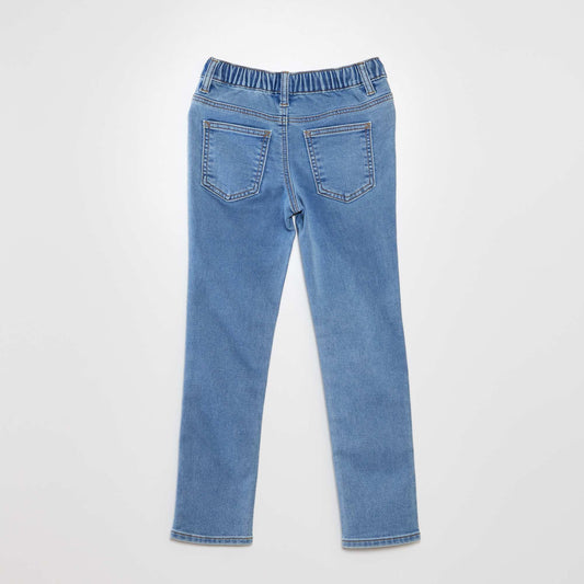 أضف إلى السلةبنطلون جينز بخصر مطاطي ورباط سحب باللون الأزرق