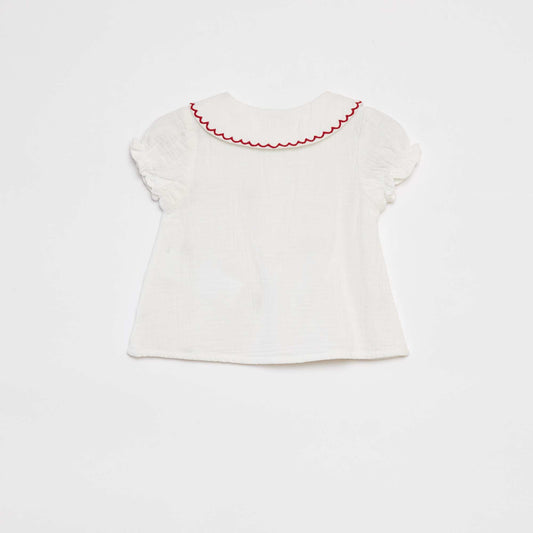 أضف إلى السلةبلوزة من القطن الشاش مع ياقة أنيقة باللون الأبيض