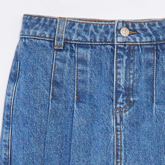 أضف إلى السلةتنورة جينز مطوية باللون الأزرق