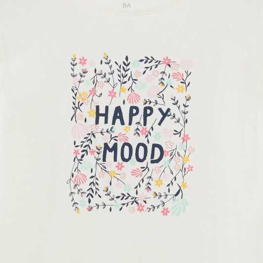 أضف إلى السلةتي شيرت مطبوع بأكمام قصيرة باللون الأبيض