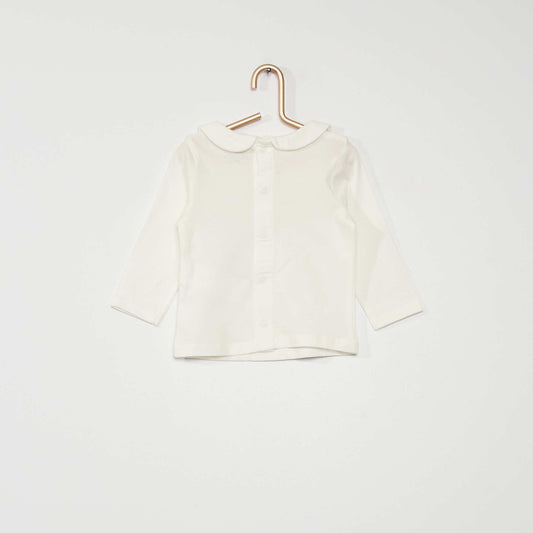 أضف إلى السلةتي شيرت بياقة بيتر بان باللون الأبيض