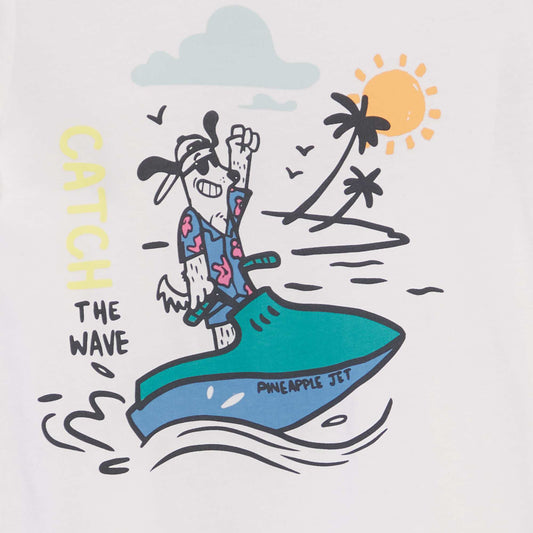 أضف إلى السلةتي شيرت مطبوع بأكمام قصيرة باللون الأبيض