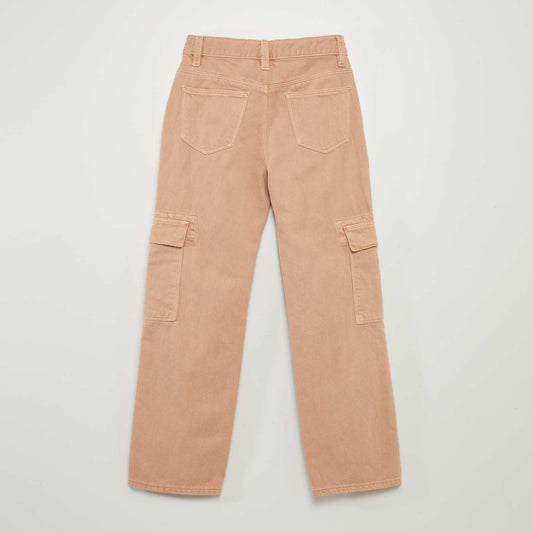 أضف إلى السلةبنطال جينز مستقيم الساق مع جيوب جانبية - بيج