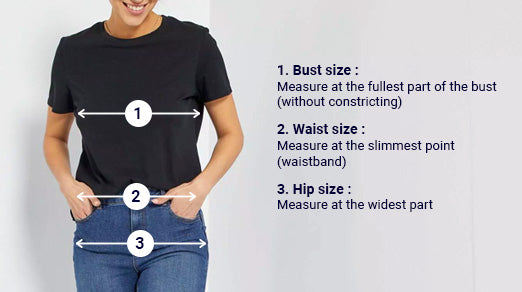 اختاري مقاسك حسب قياسات صدرك ووركك.