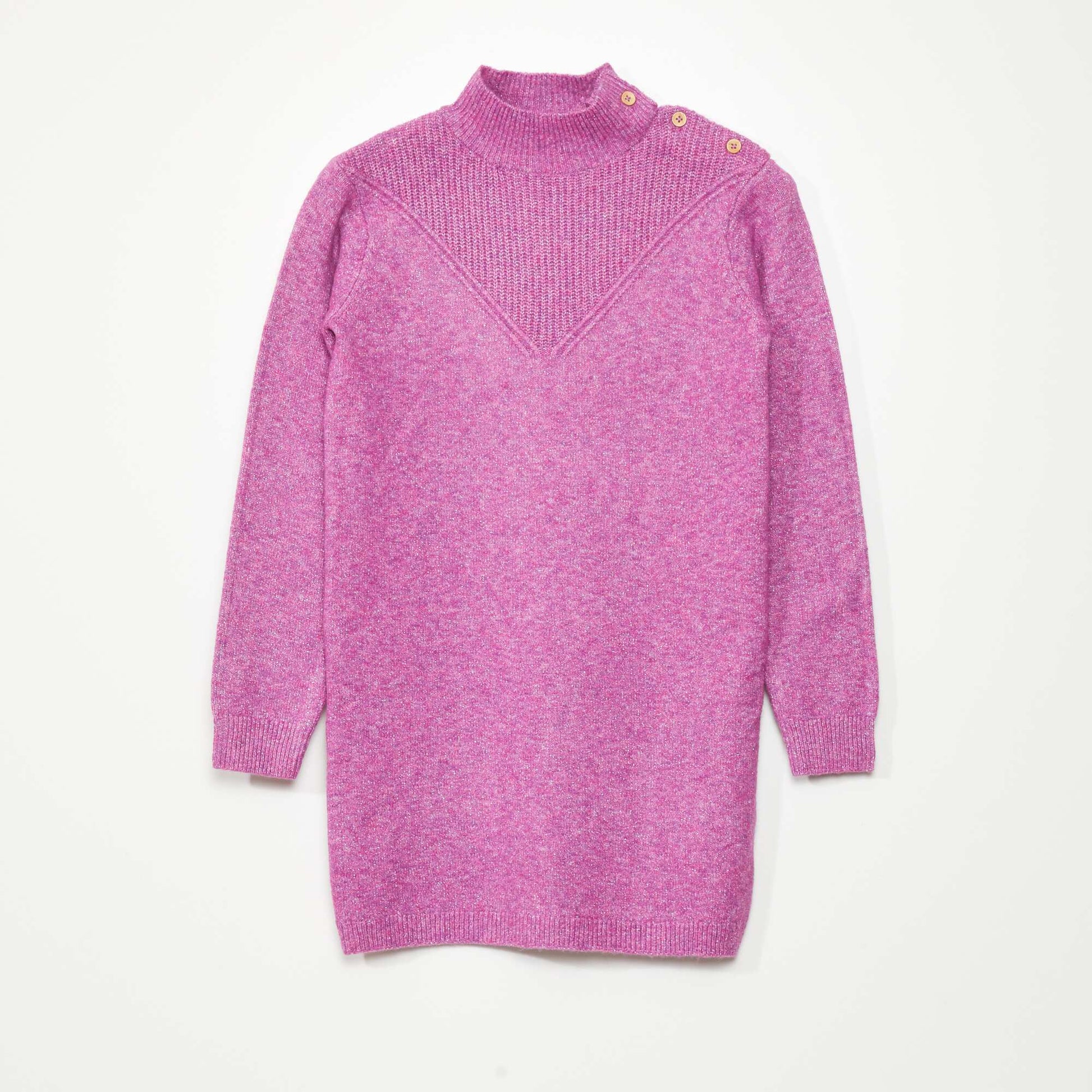 فستان سويتر محبوك برقبة عالية باللون الوردي
