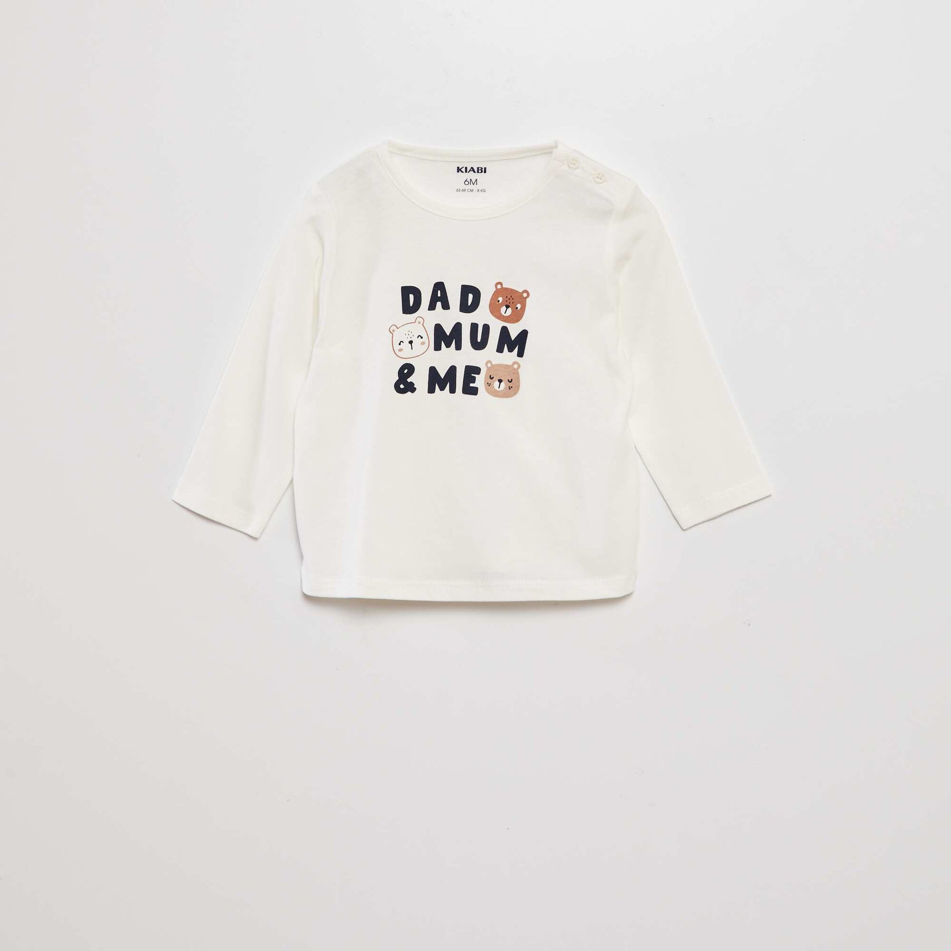 تي شيرت أبيض بطباعة كتلة بأكمام طويلة