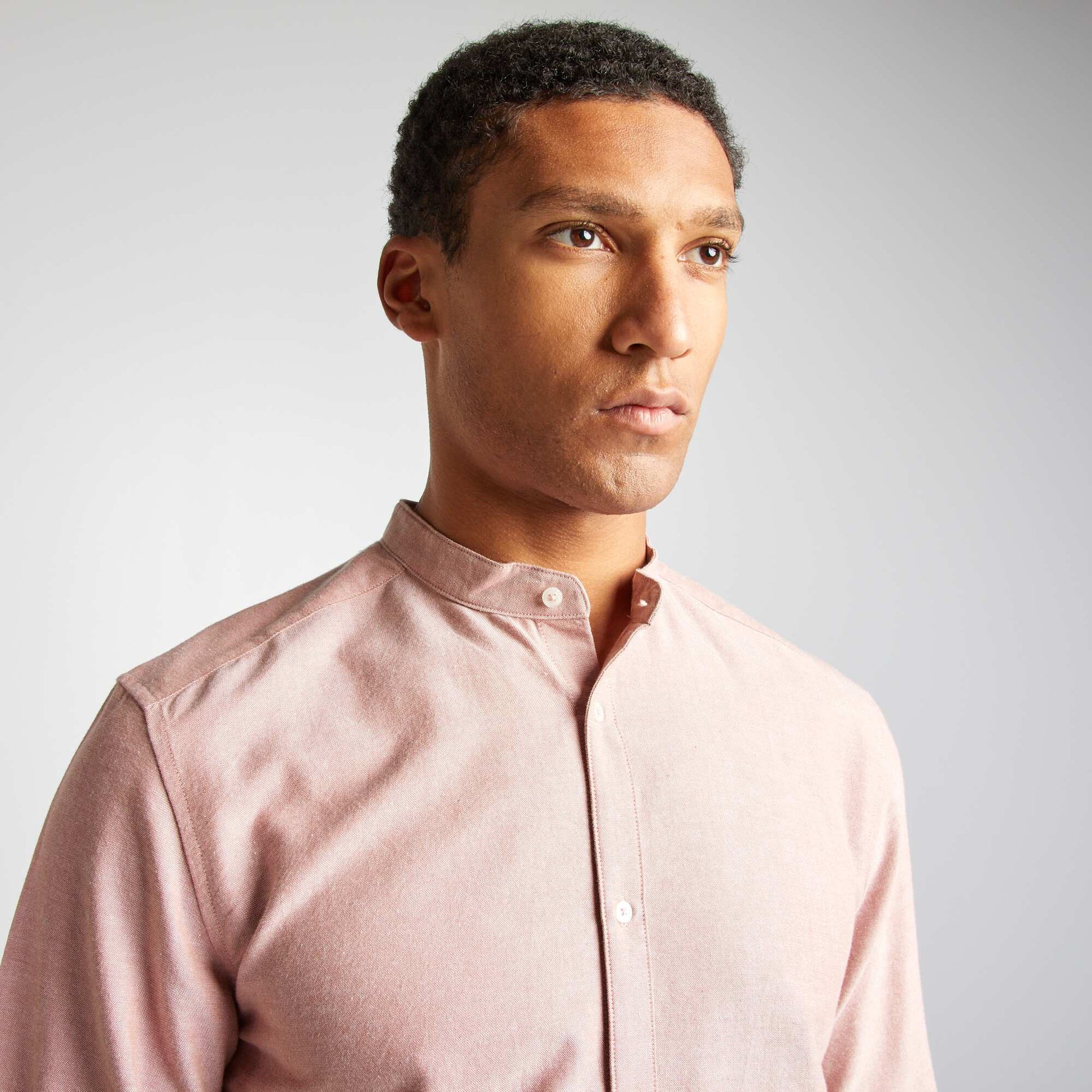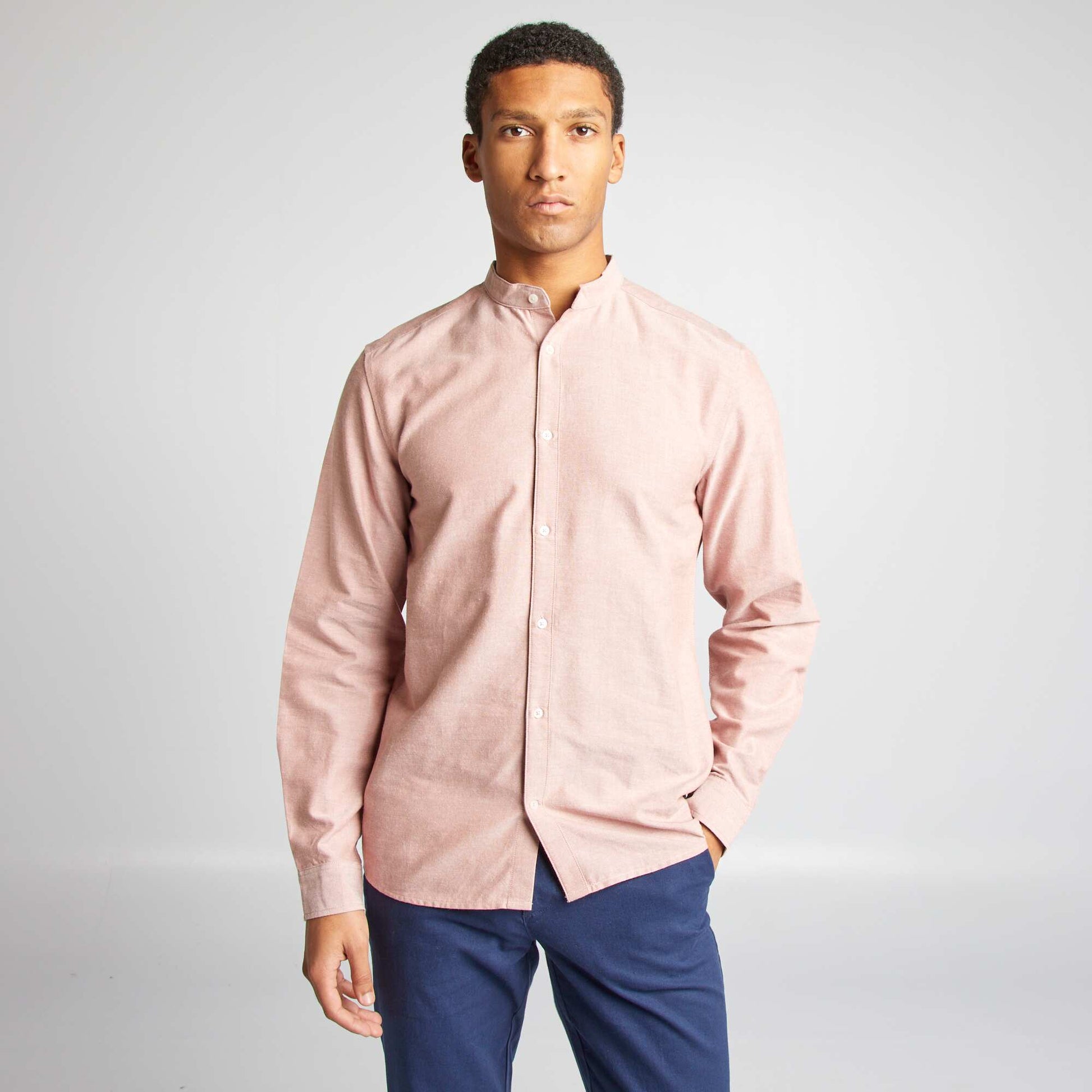 قميص أكسفورد بياقة ماندرين باللون الوردي