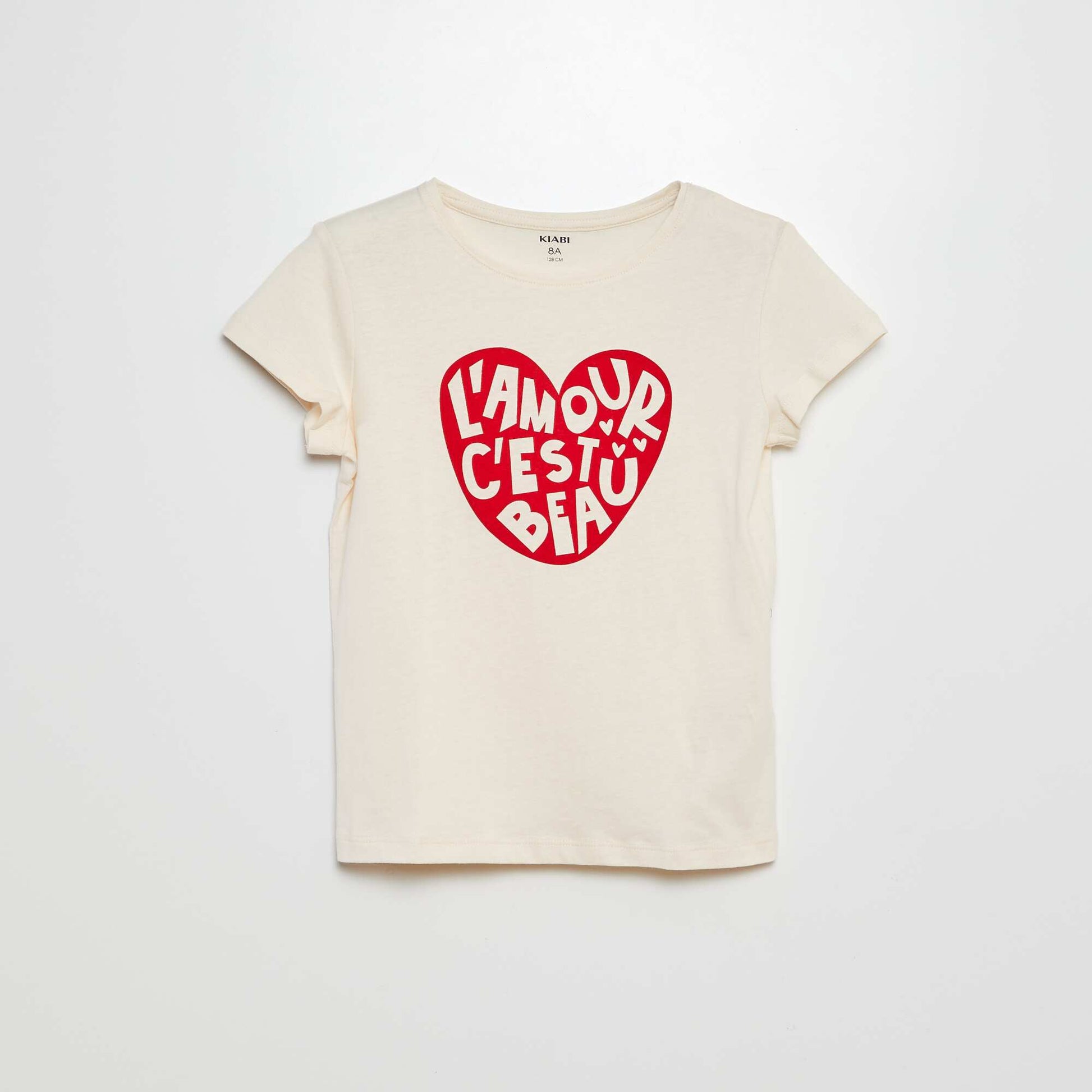 تي شيرت أساسي مطبوع باللون البيج
