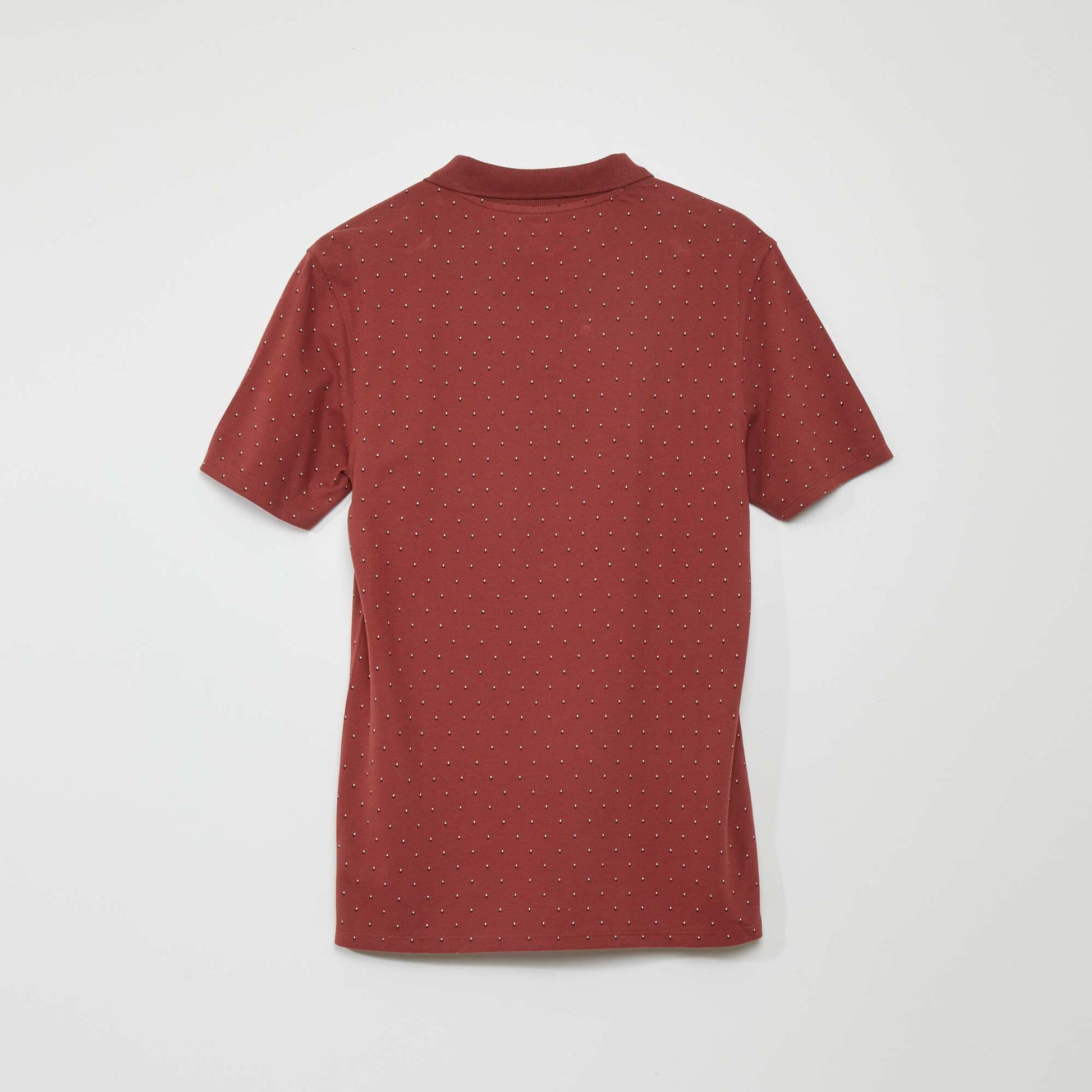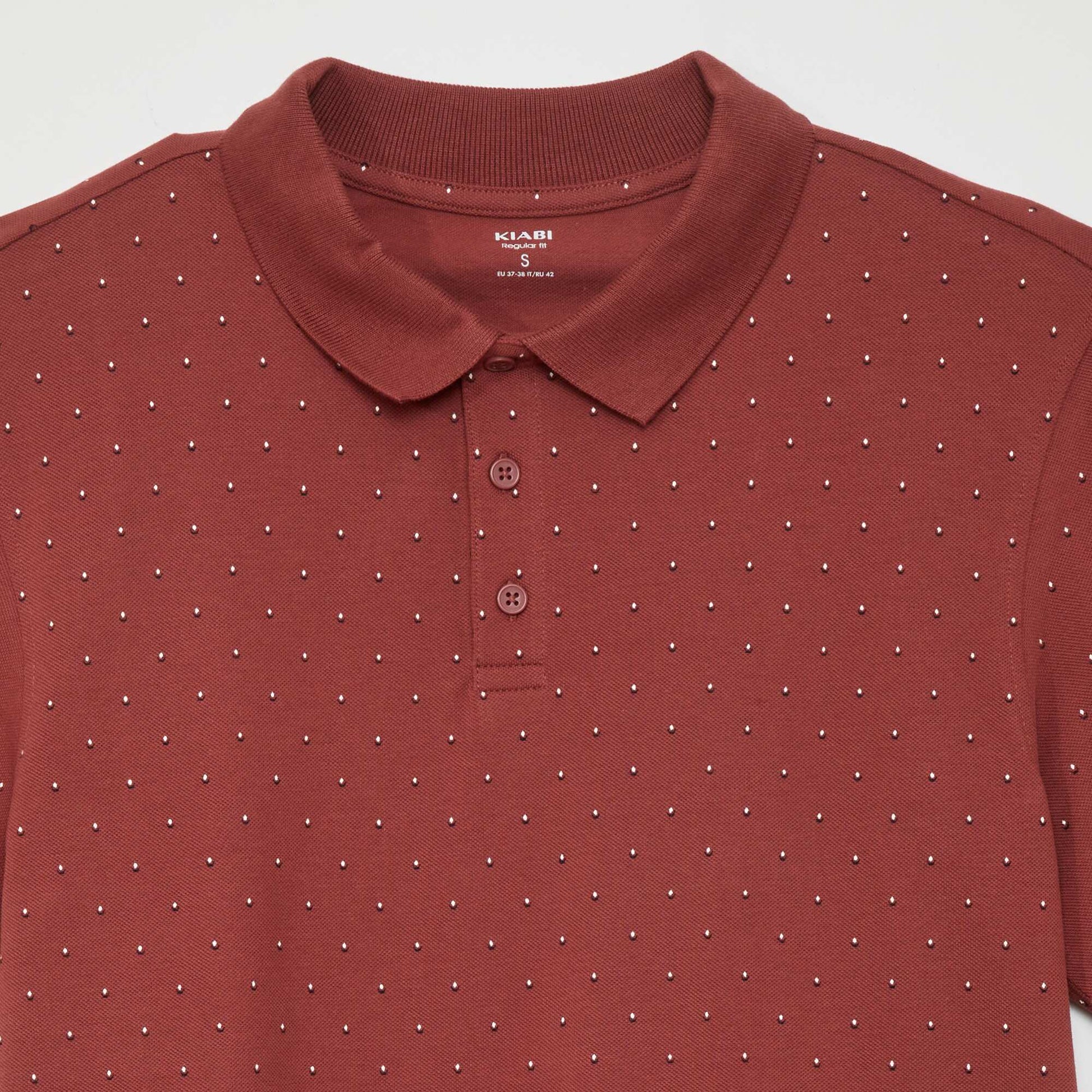 قميص بولو بيكيه قطني مطبوع باللون الأحمر