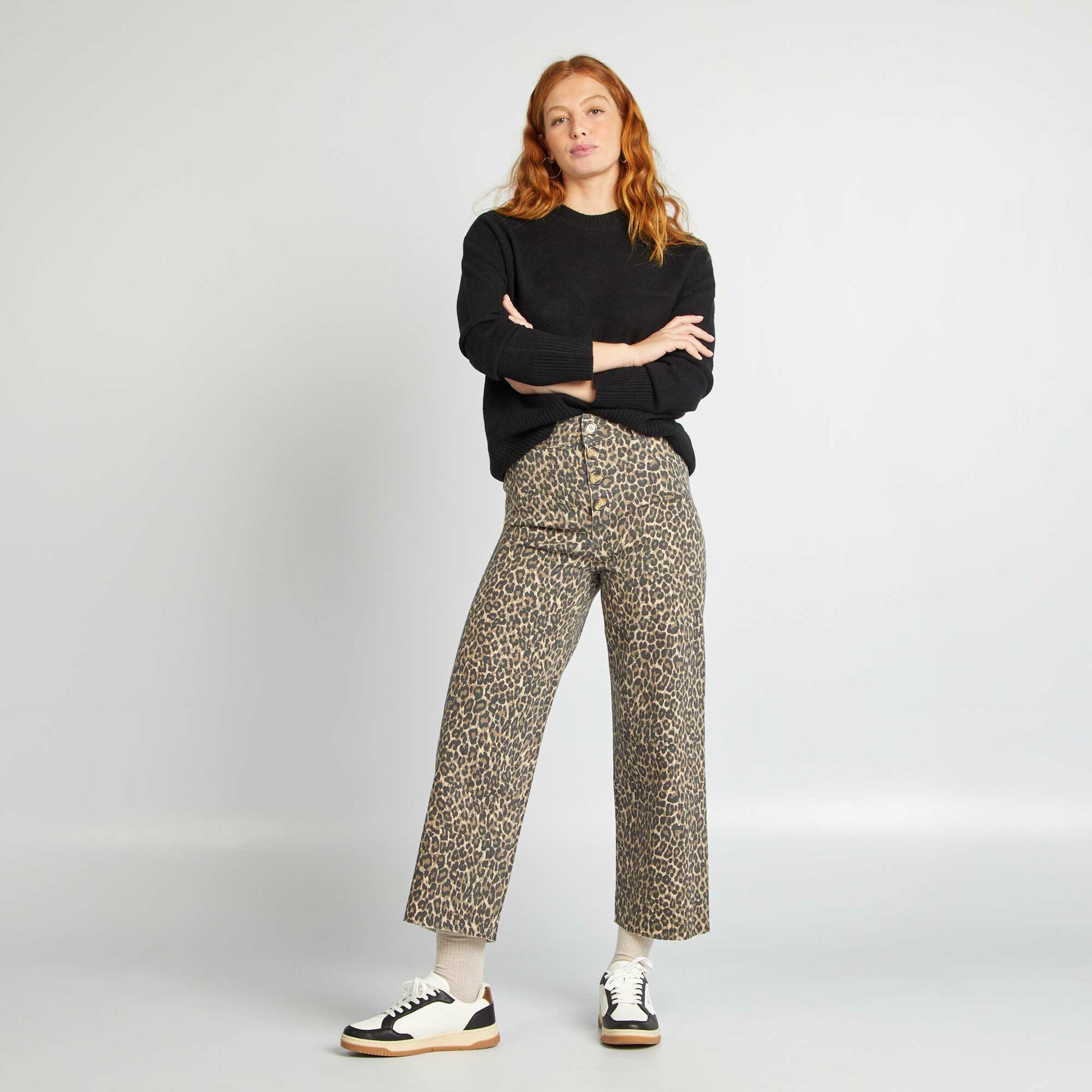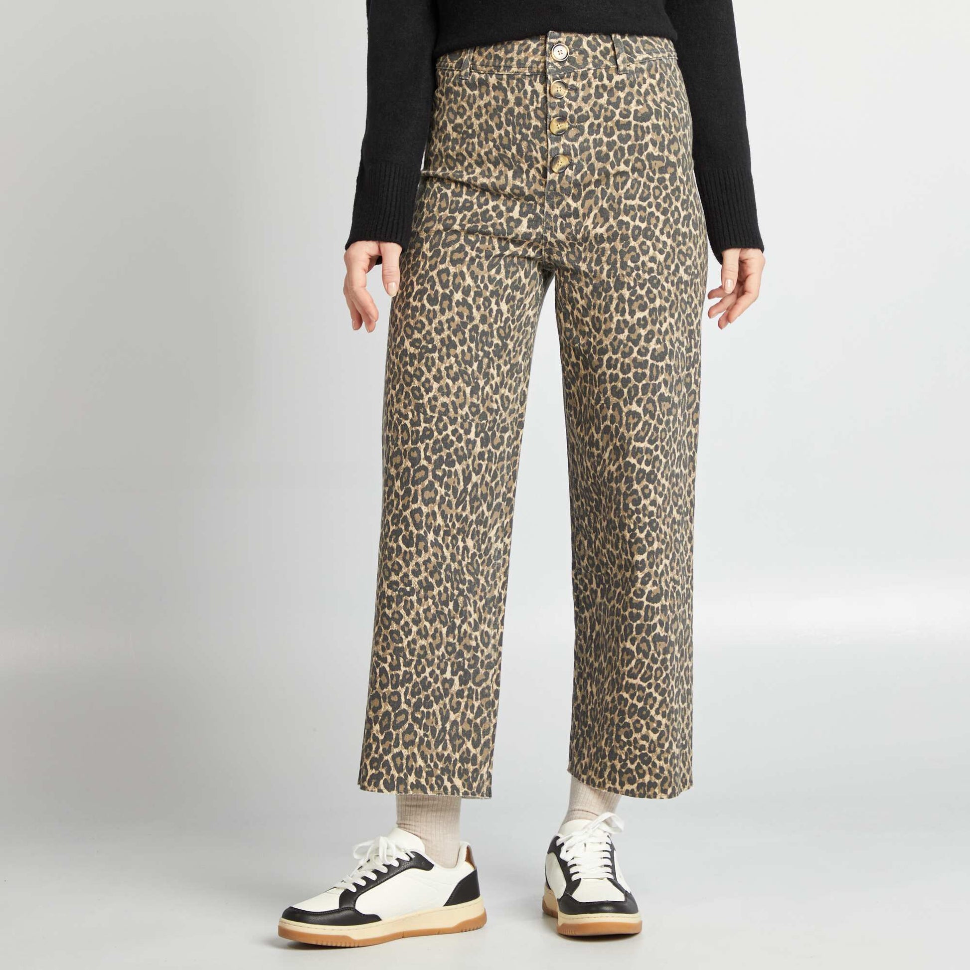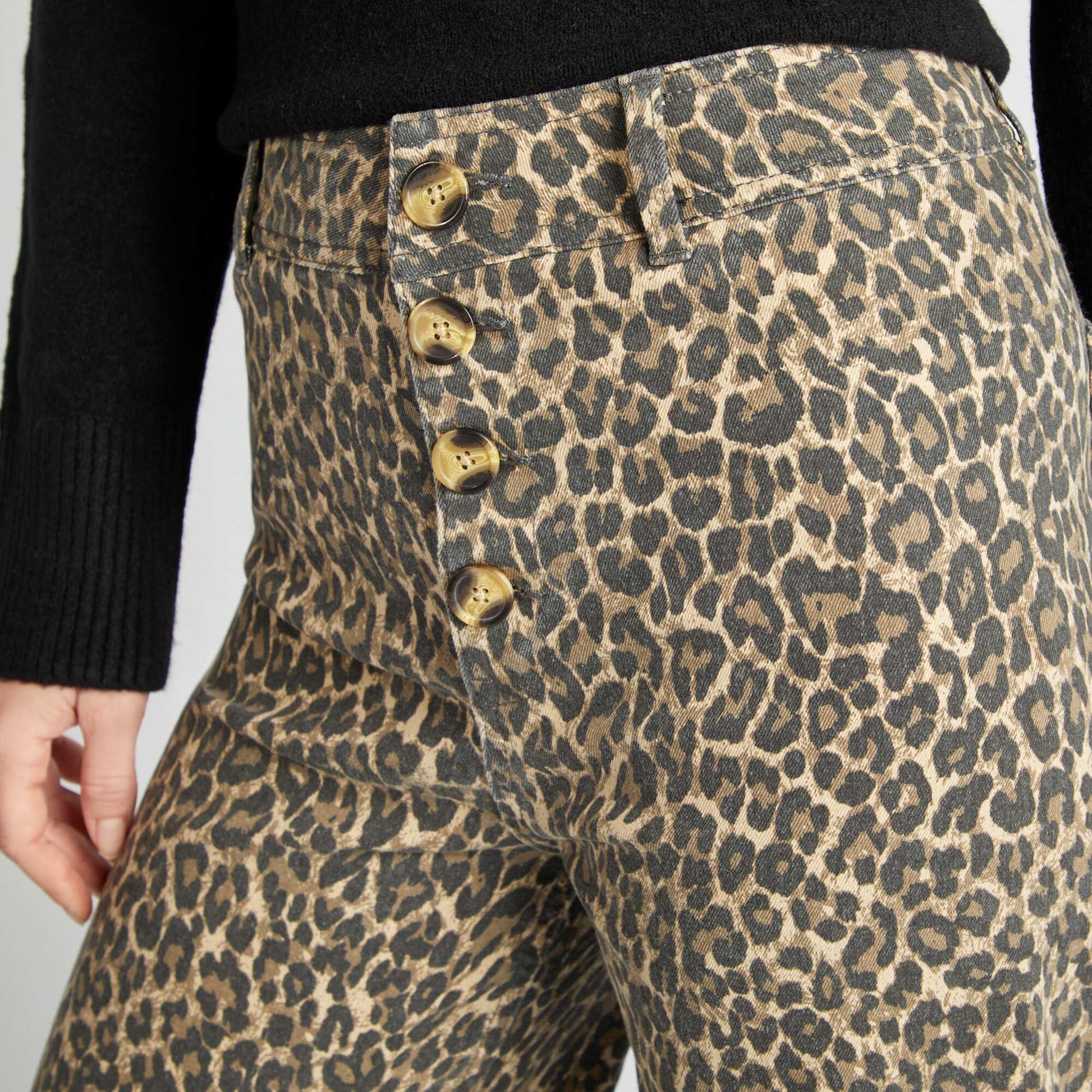 بنطال جينز واسع الساق مع أزرار أنيقة للإغلاق باللون البيج
