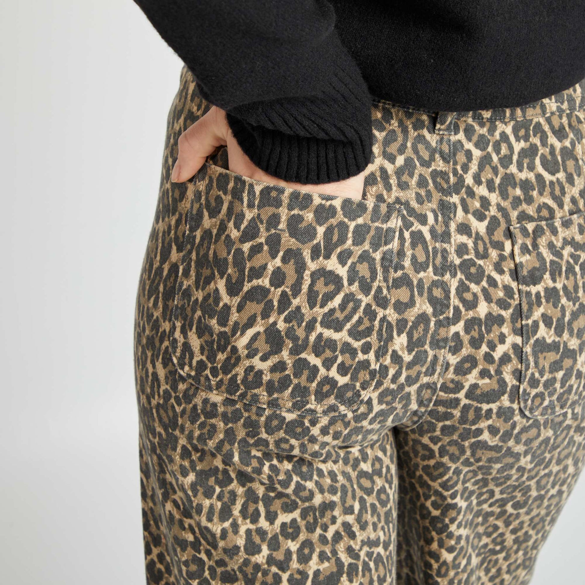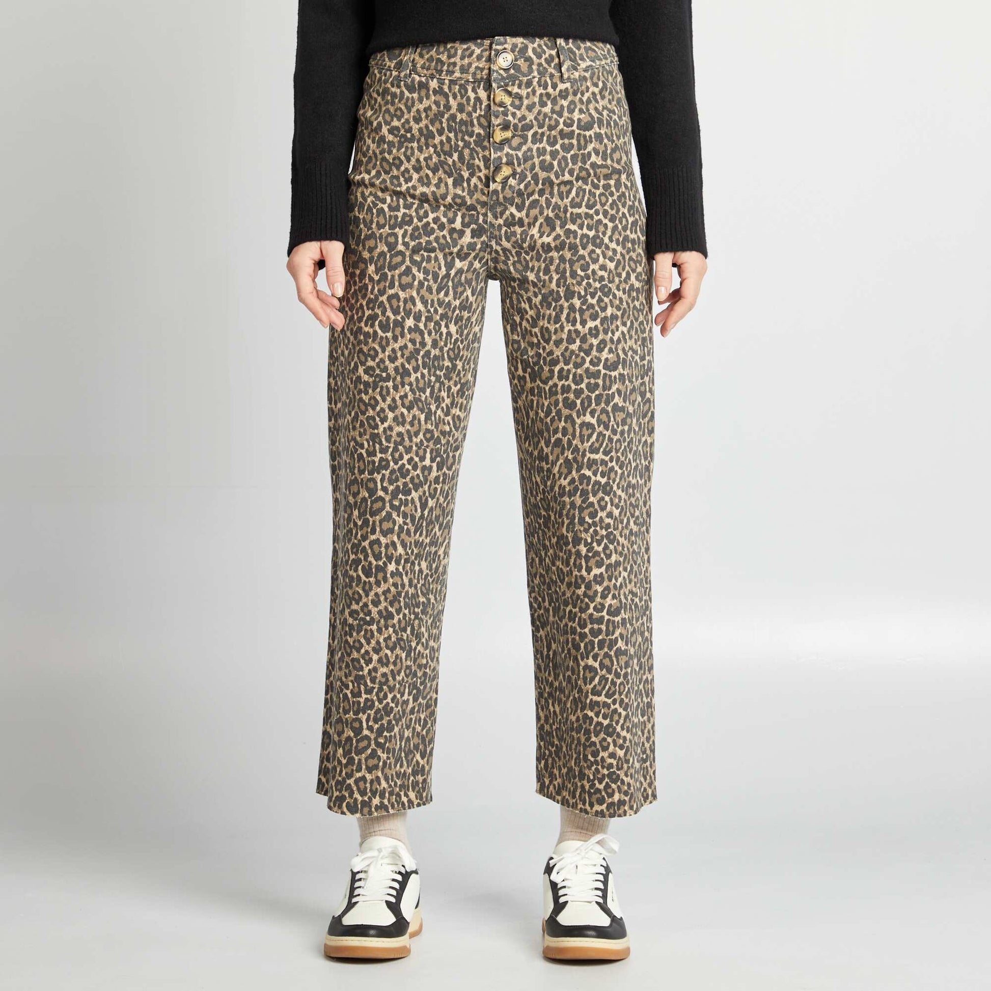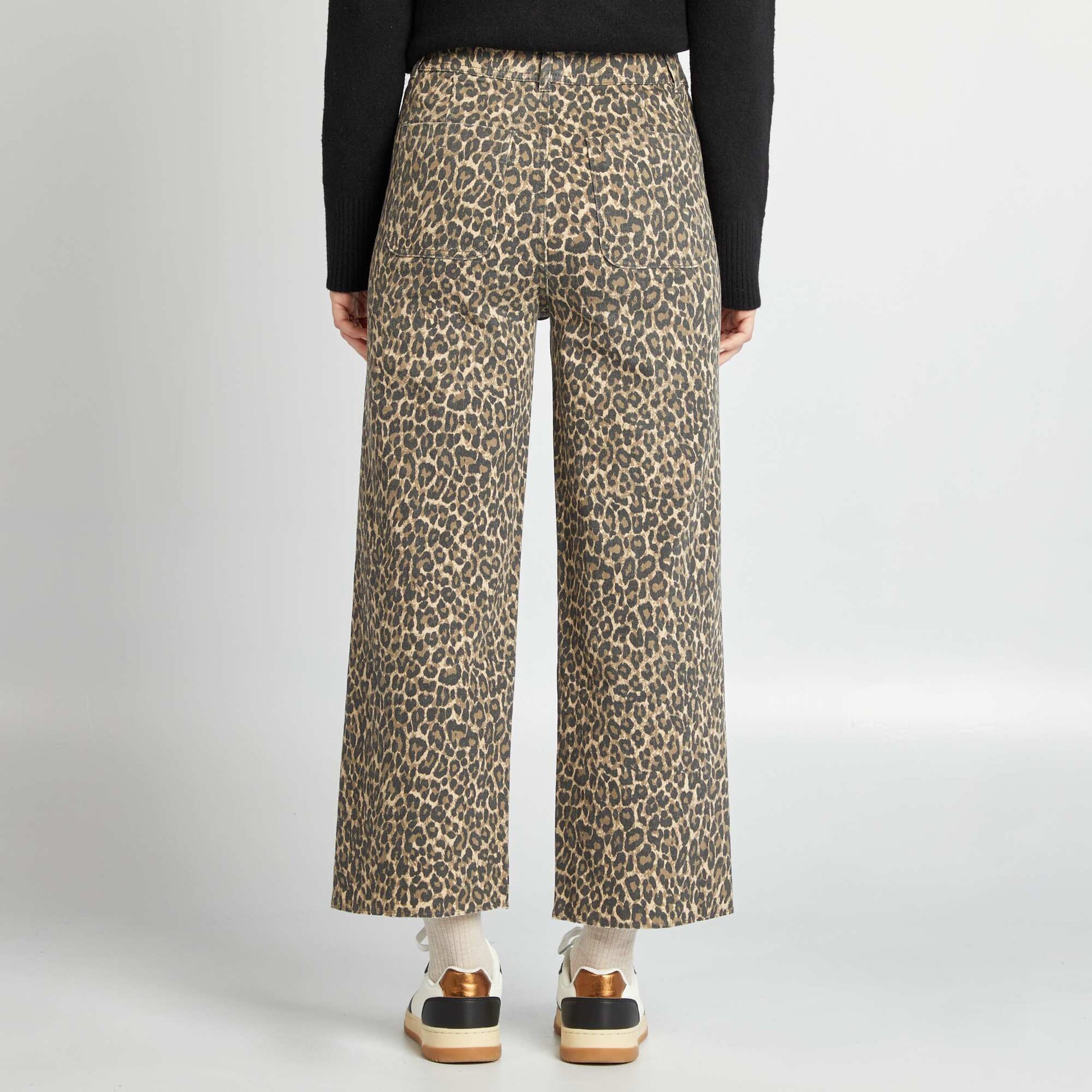 بنطال جينز واسع الساق مع أزرار أنيقة للإغلاق باللون البيج