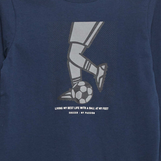 Long-sleeved printed jersey T-shirt with fancy textured designs BLUE