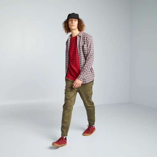 -30%Long-sleeved T-shirt with henley collar raspberry red