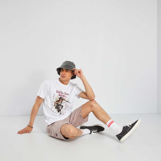 -20%Jersey T-shirt with buttoned neckline WHITE