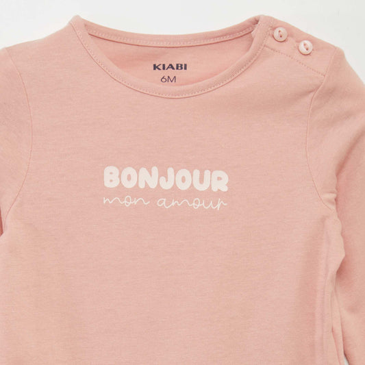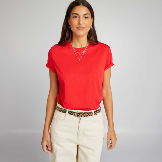 -20%Ribbed knit T-shirt with ruffled collar PINK
