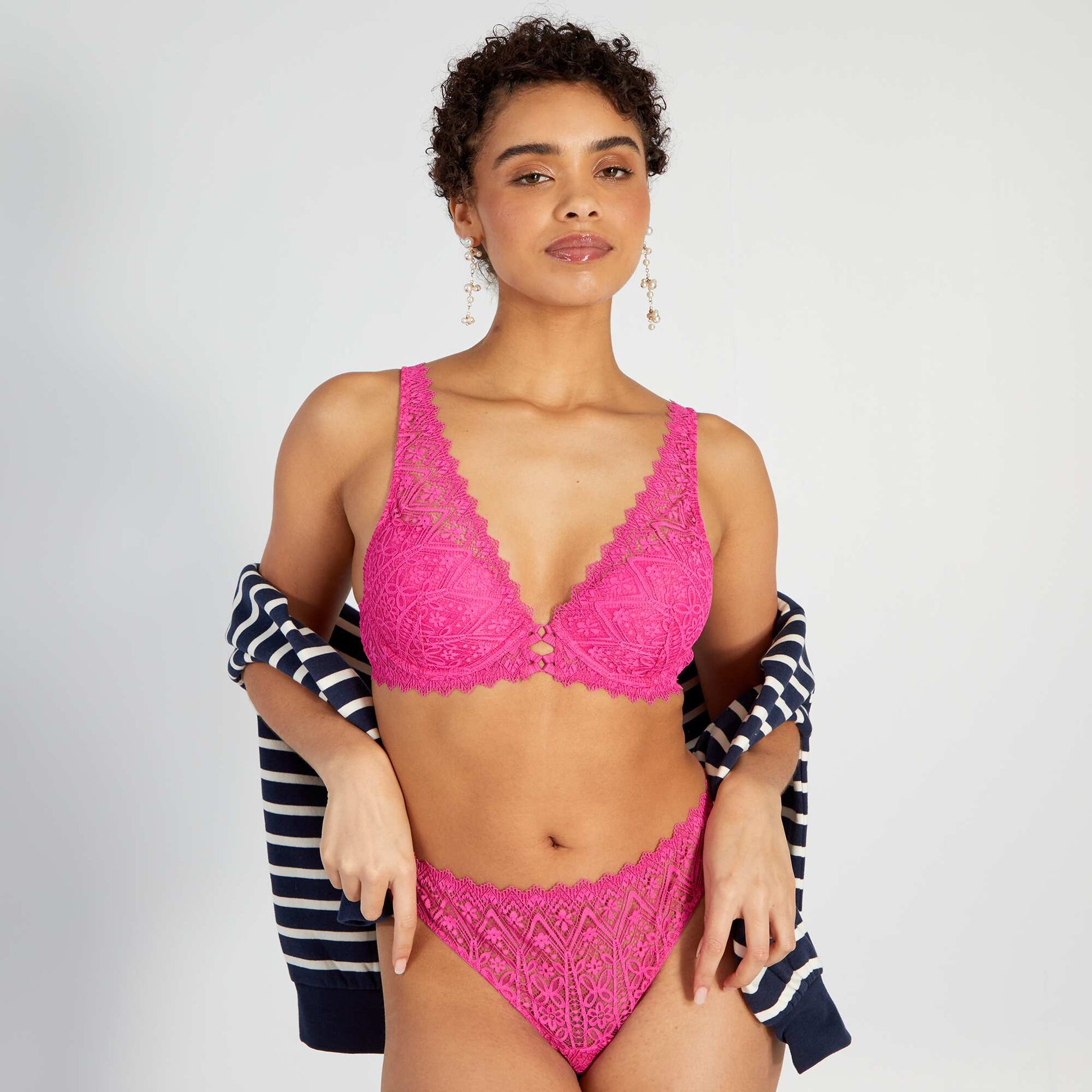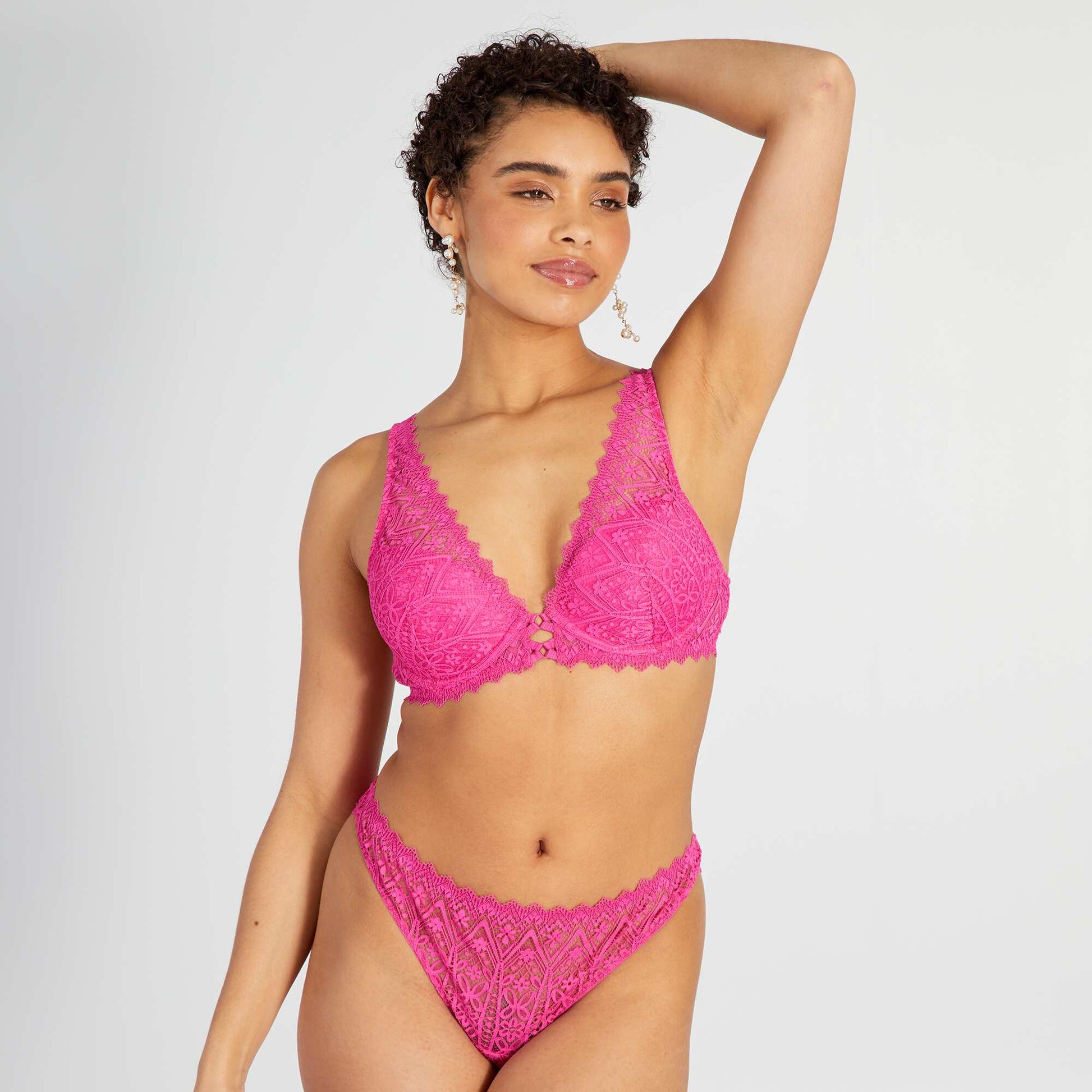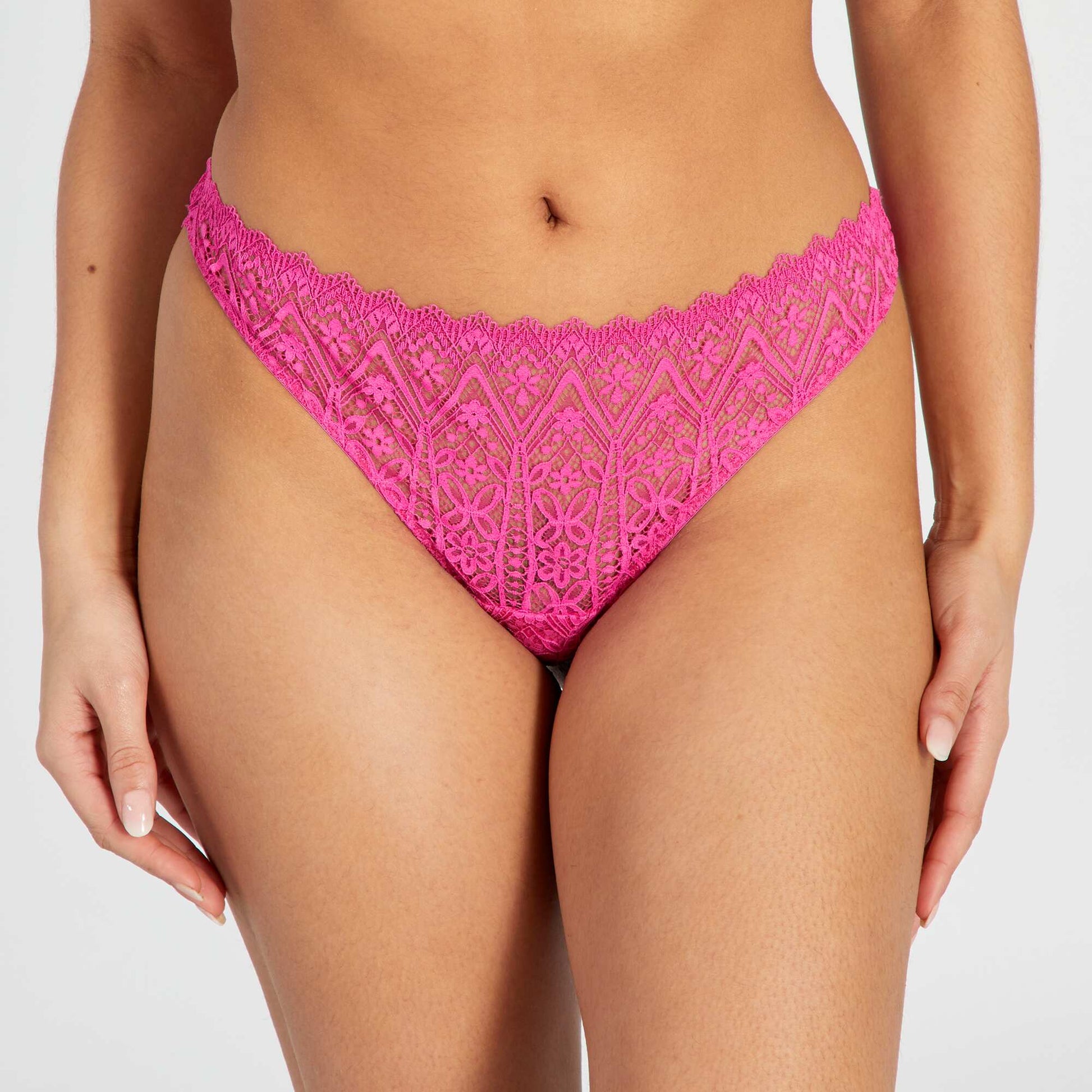Lace thong with openwork detail on the back PINK BERRY
