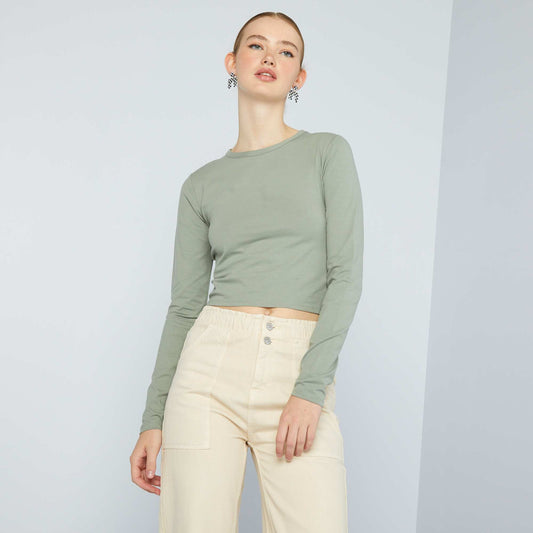 -40%Cropped ribbed polo neck sweater L_BEIGE