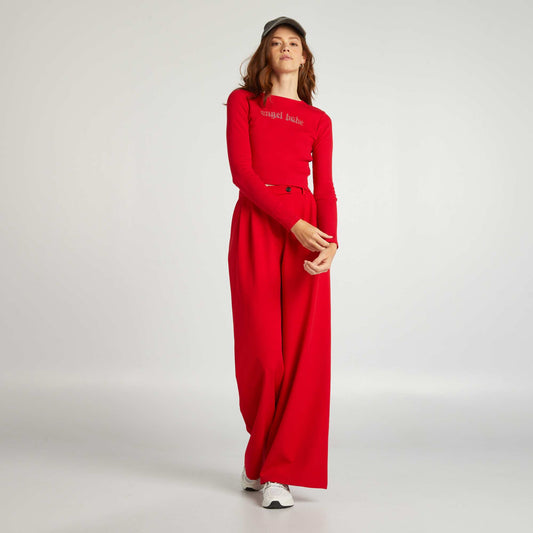 -40%Crop top T-shirt with rhinestone lettering RED TANGO