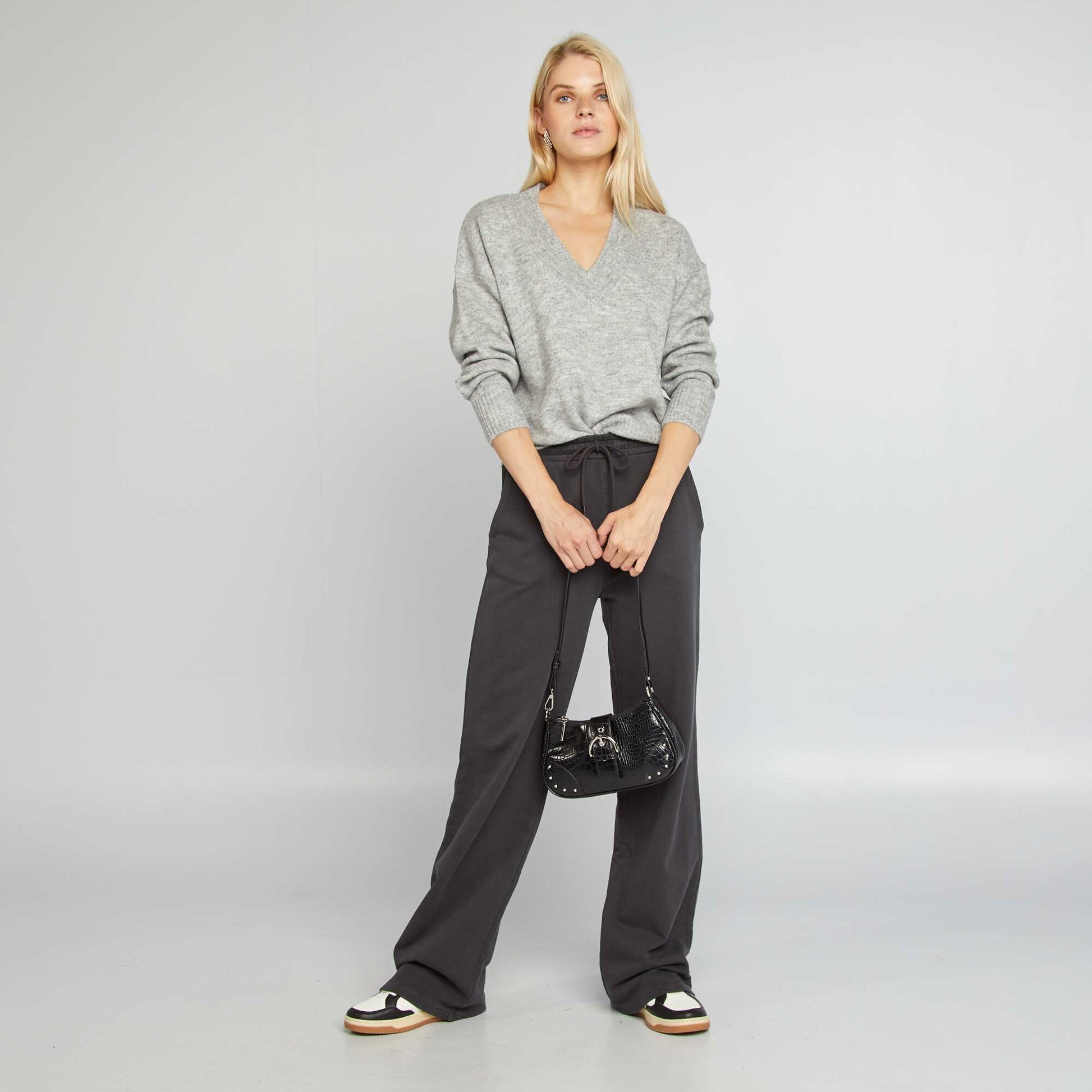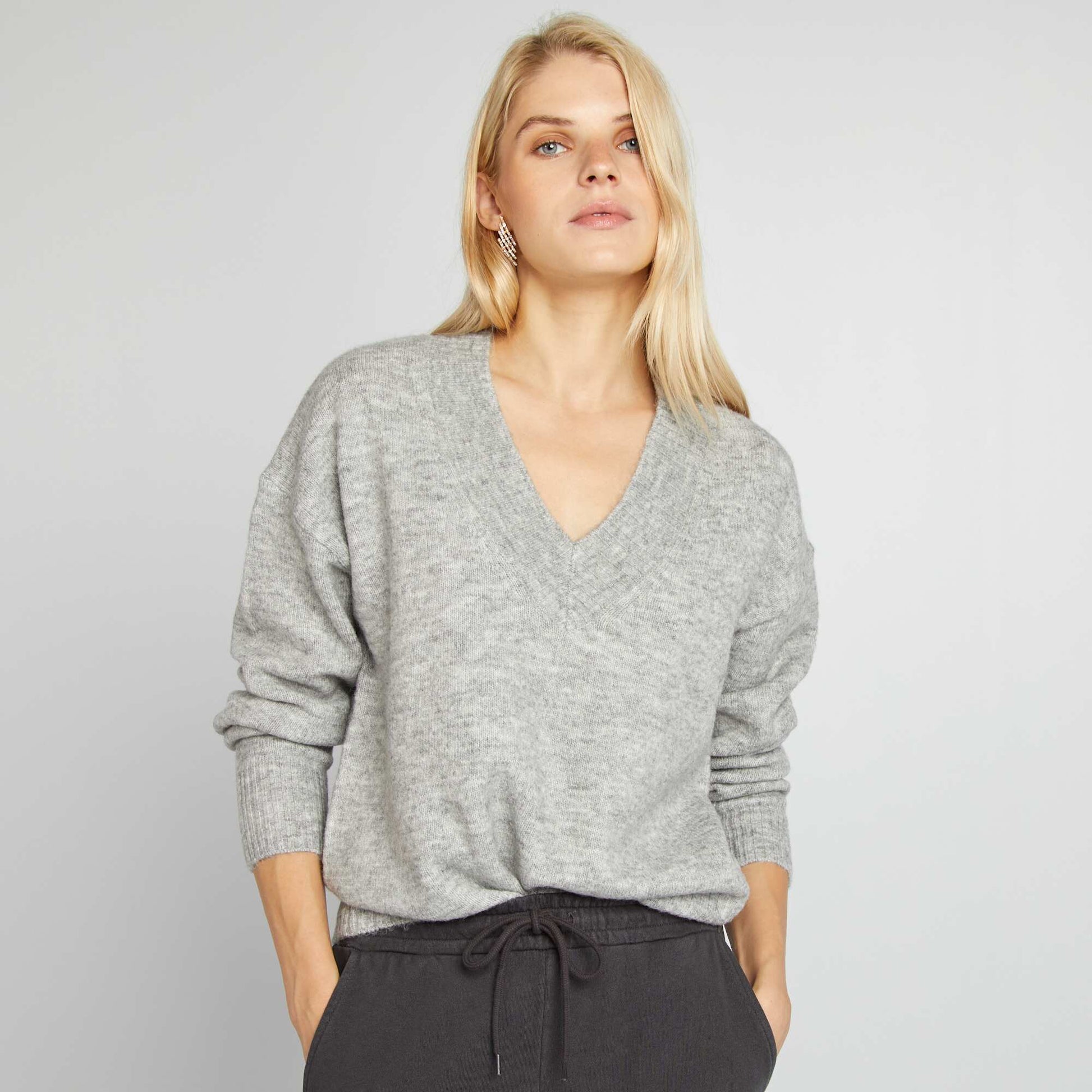 Knitted V-neck jumper GREY