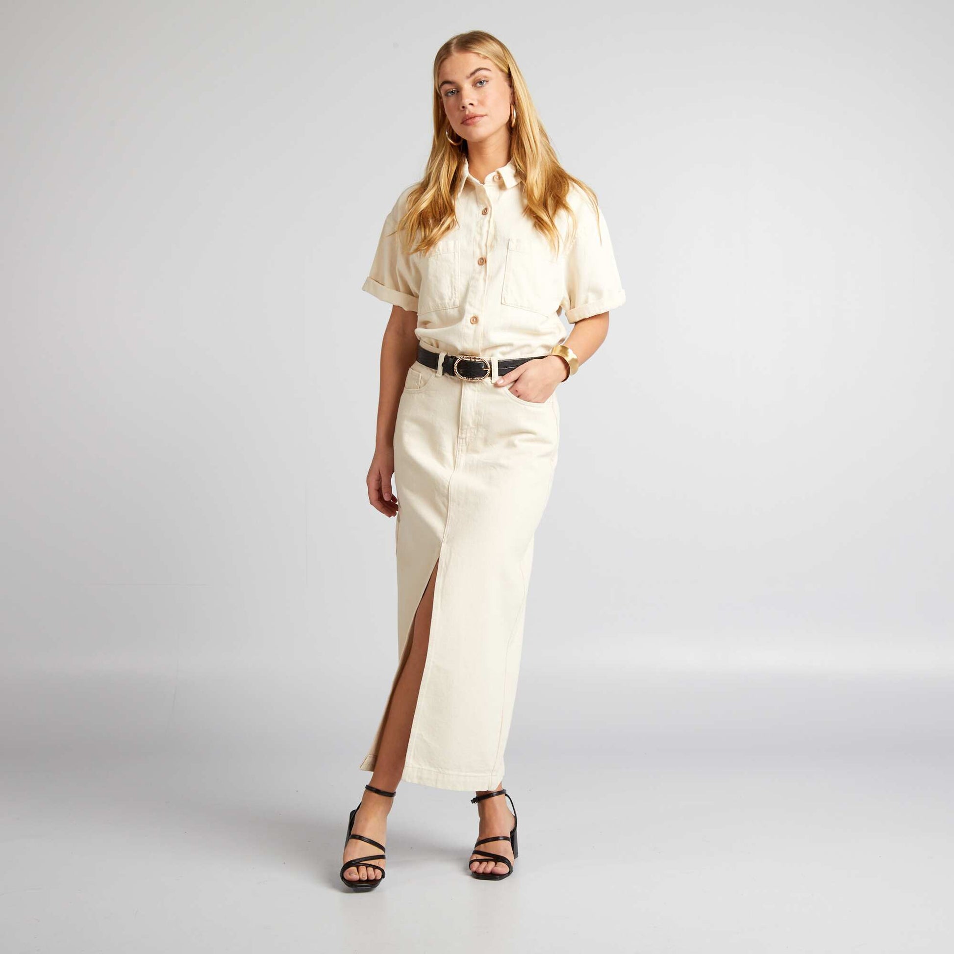 This skirt looks great with a blouse and a pair of trainers! We love the long slit at the front that makes it fabulously comfortable!