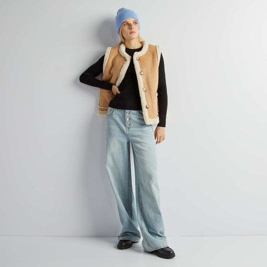 -20%Ribbed T-shirt with long sleeves BEIGE
