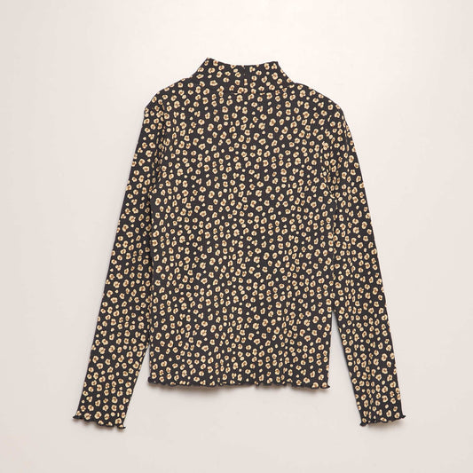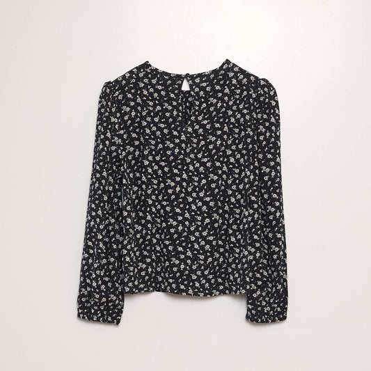 -20%Printed long-sleeved blouse BLACK
