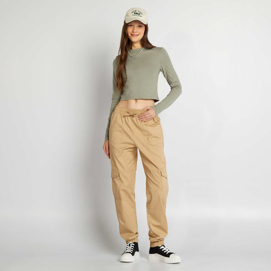 -20%Lightweight sweatshirt fabric joggers BEIGE