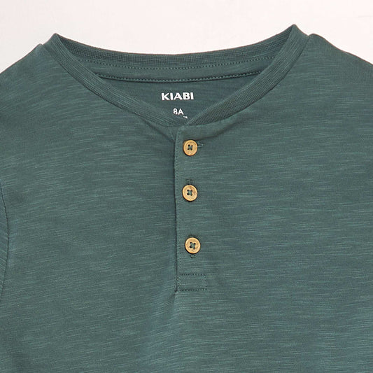 -20%Henley collar T-shirt GREEN