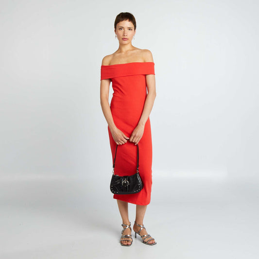 -30%Form-fitting ribbed knit dress with Bardot neckline red