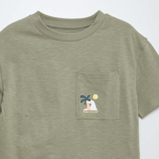 Short-sleeved T-shirt with prints and breast pocket KHAKI