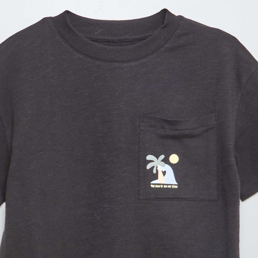 Short-sleeved T-shirt with prints and breast pocket BLACK