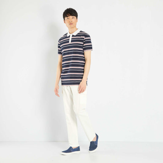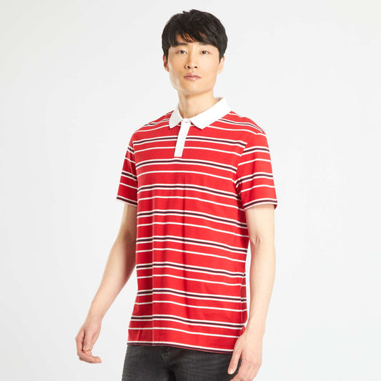-30%Cotton piqué polo shirt with mandarin collar GREEN