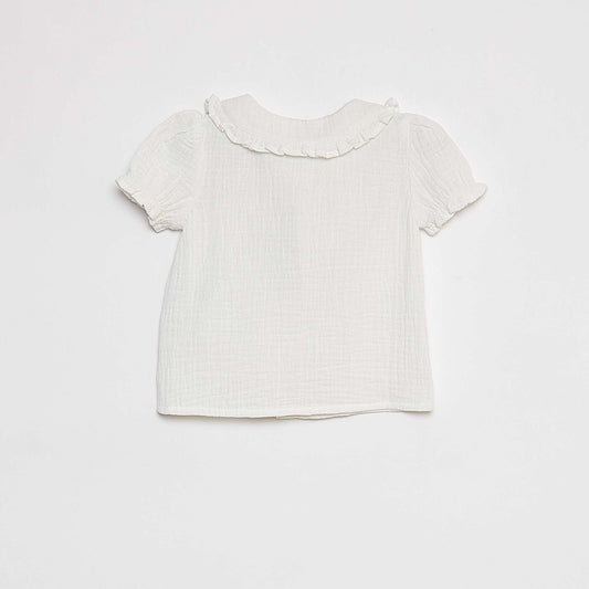 Add to cartCotton gauze blouse with Peter Pan collar WHITE