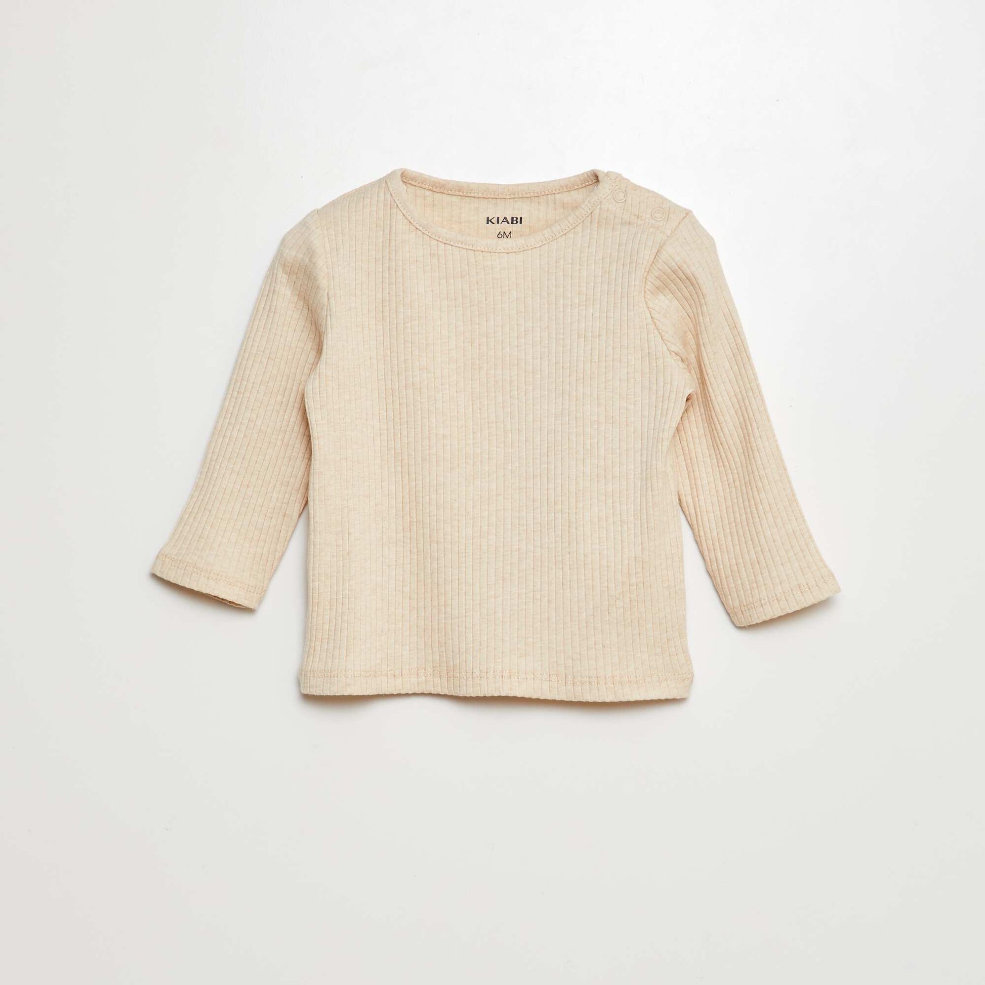 Pack of 2 plain ribbed long-sleeved T-shirts GREY