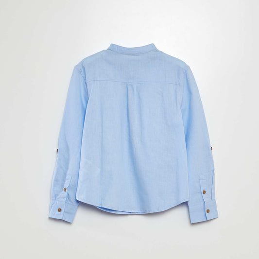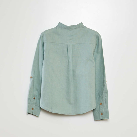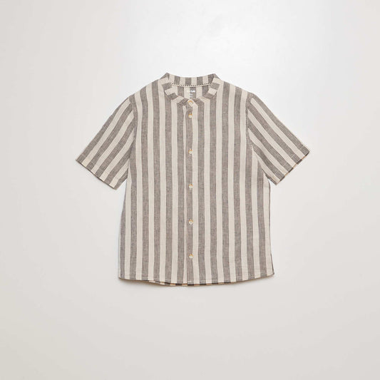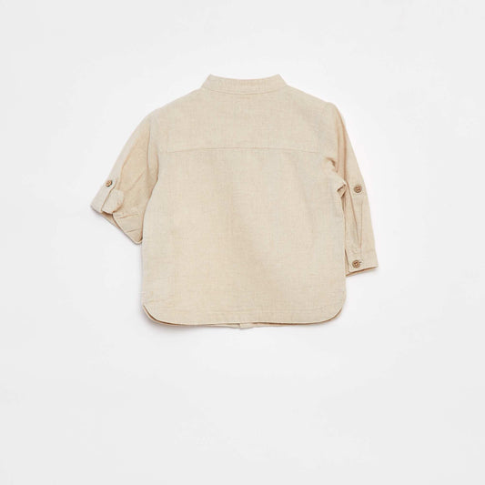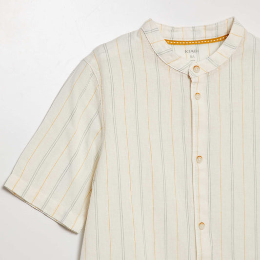 -20%Shirt with mandarin collar and short sleeves BEIGE