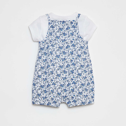 -20%T-shirt + playsuit with a floral print - 2-piece set WHITE