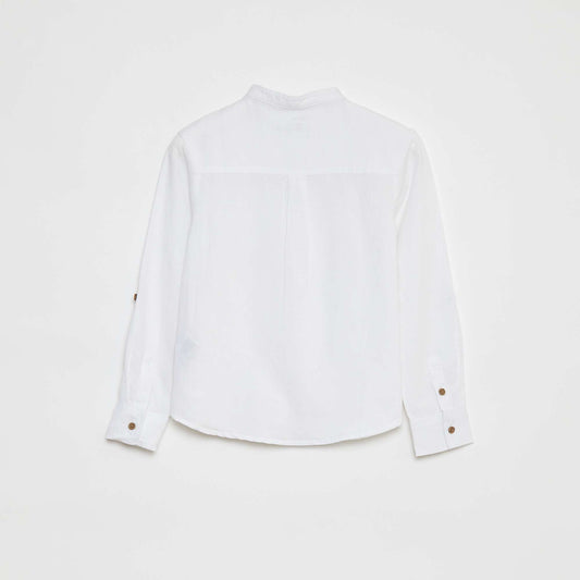 -20%Shirt with mandarin collar and short sleeves WHITE
