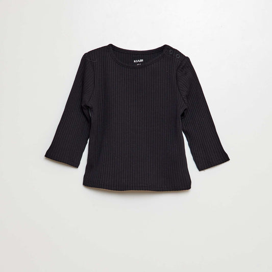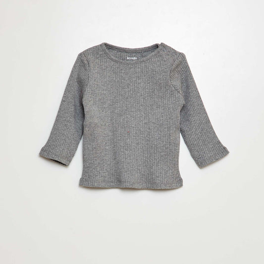 -20%Pack of 2 plain ribbed long-sleeved T-shirts GREY