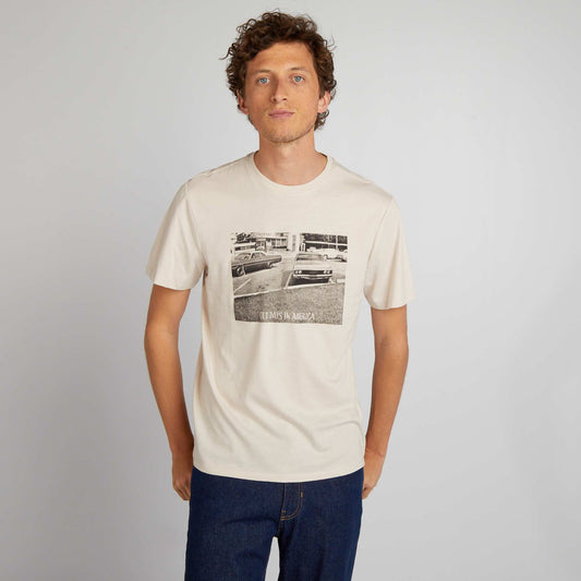 -20%Short-sleeved printed T-shirt BEIGE