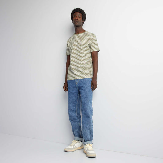 -20%Jacquard T-shirt with round neck YELLOW
