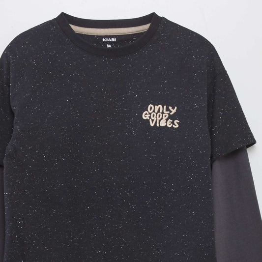 -20%T-shirt with jersey double sleeves BLACK