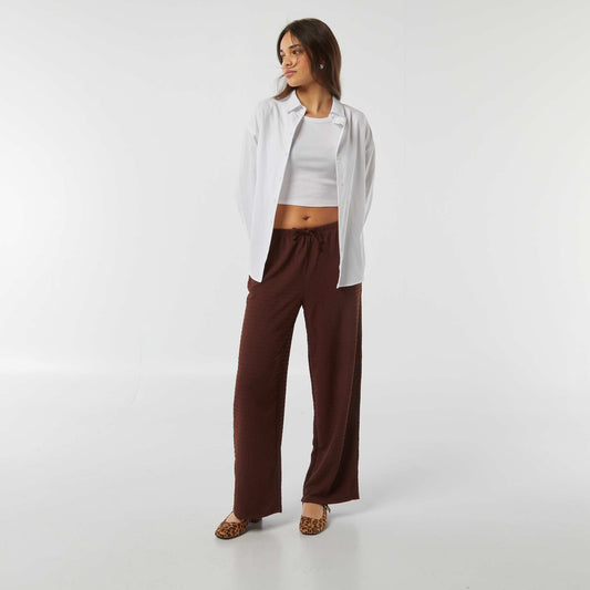-20%Patterned ribbed T-shirt with scalloped trim BEIGE