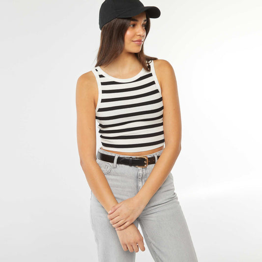 -20%Patterned ribbed T-shirt with scalloped trim WHITE