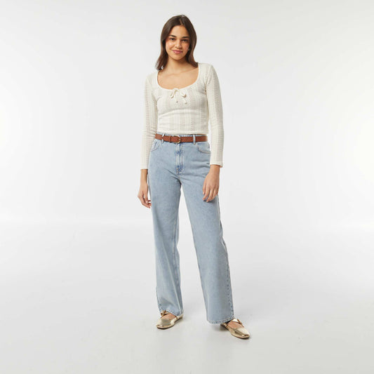 Long-sleeved T-shirt in openwork crochet knit WHITE